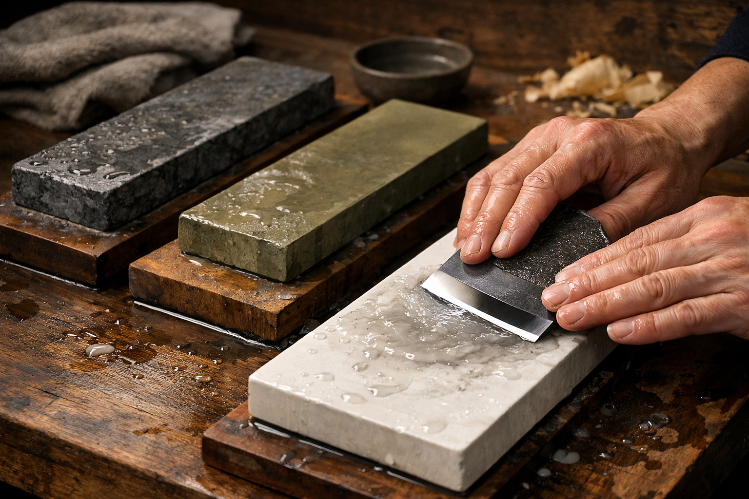 - Whetstones (Toishi): You’ll need a progression of waterstones: