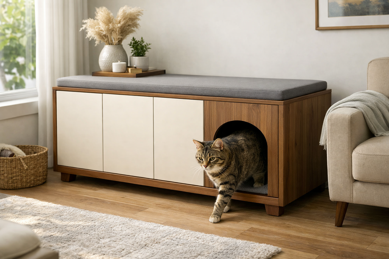 These ingenious designs conceal unsightly litter boxes while offering cats privacy and containing odors.