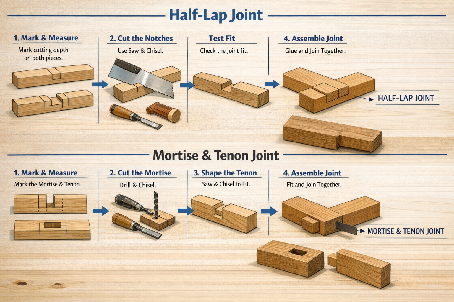 - Focus on precise measurements and careful execution for clean, strong joints.