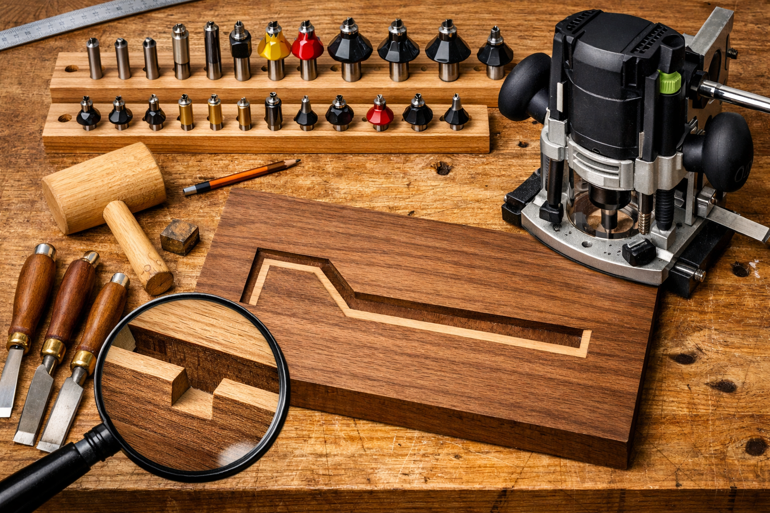 of a woodworking bench with various router bits laid out neatly, a plunge router clamped for](https://zsxkvszxbhpwnvzxdydv.supabase.co/storage/v1/object/public/generated-images/kie/7095c264-75c0-4796-93de-ccc83b818cc0/slot-1-1777262522364.png))