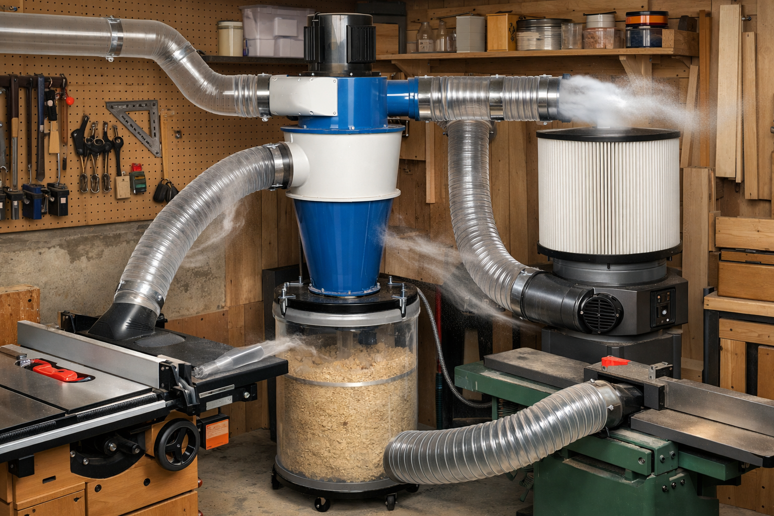 For small workshops, a robust shop vac often serves as the primary suction unit, especially when paired with a cyclone. For more intensive use, a dedicated dust collector offers higher airflow (CFM – cubic feet per minute).