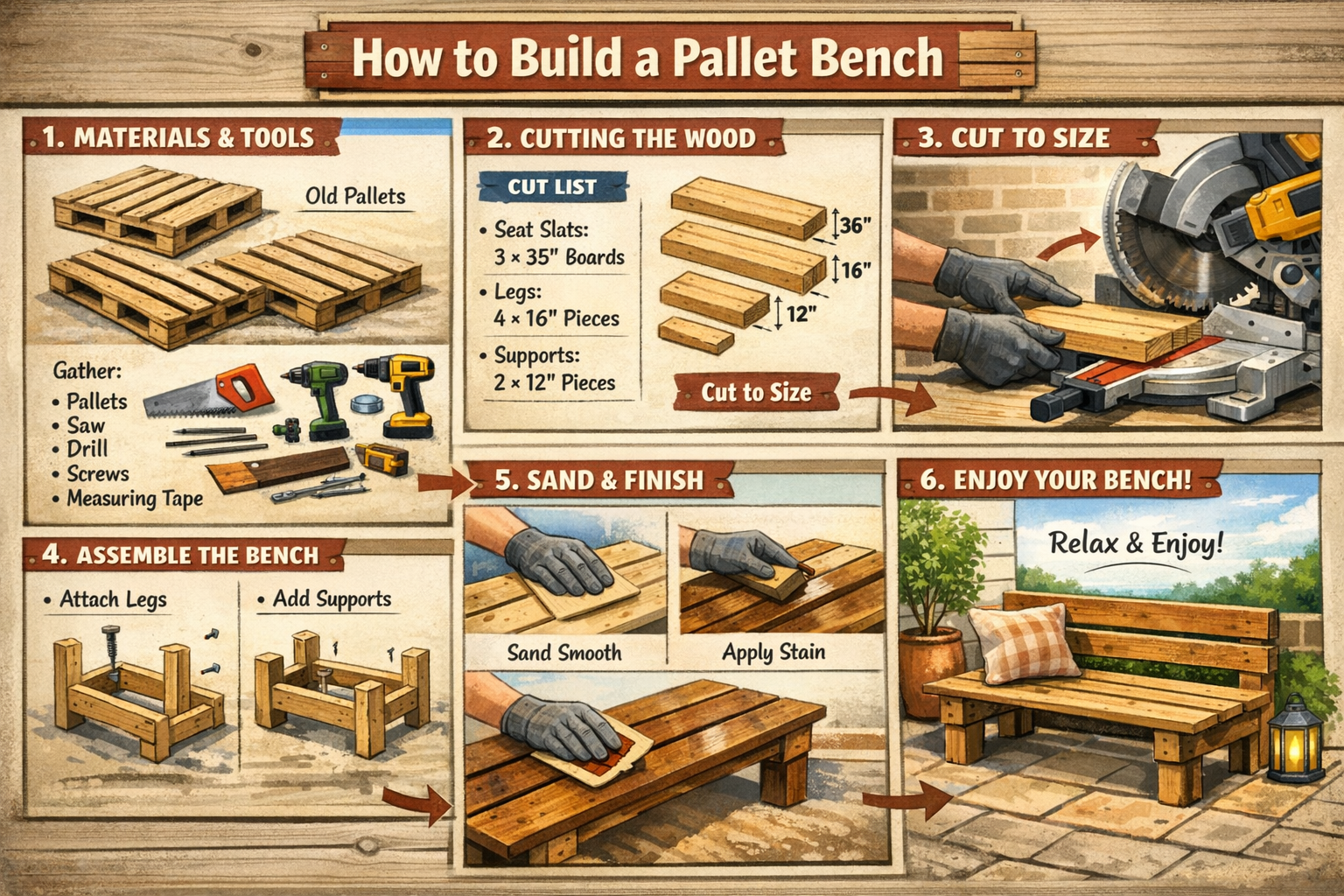 Where to find pallets: Local businesses, construction sites, and warehouses are common sources. Always ask for permission before taking pallets, and explain your intention to upcycle them. Many businesses are happy to give them away to save on disposal costs.